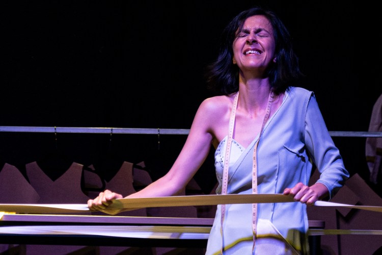 A través de una puesta en escena tan simbólica como útil que recrea un taller de costura, las protagonistas de Sujetas se sirven del humor, la música y un potente apoyo audiovisual para narrar sus vivencias en torno a sus cuerpos y cómo la sociedad los percibe.